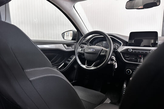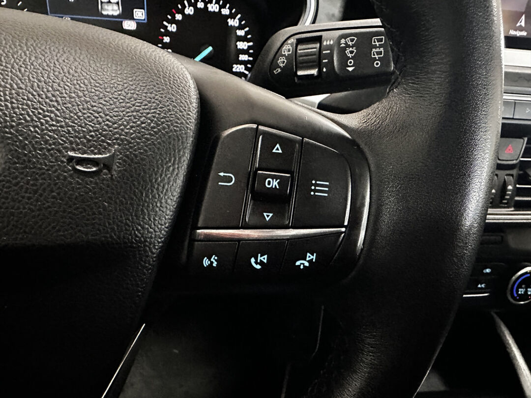 Dankzij Connected Services houdt u de auto nog gemakkelijker in topconditie. Elke dag. Hoeveel gigabytes aan muziek wilt u meenemen? Met één stick in de usb-aansluiting kunt u uren en uren vooruit. Deze Ford Focus is voorzien van sensoren aan de achterzijde om een achteropkomend verkeer waarschuwing te geven als de afstand tussen u en een achterligger te klein is. De meeste schade bij inparkeren komt van een randje of paaltje dat u even niet zag. Maar de parkeersensoren zien alles en waarschuwen op tijd. Cruise control houdt automatisch de ingestelde snelheid vast. Het is een ideaal hulpmiddel om lange ritten comfortabeler te maken. En dan is deze auto ook nog eens voorzien van dashboard met spraakbediening, full map navigatiesysteem, airconditioning, lederen stuur, isofix-aansluiting en centrale deurvergrendeling met afstandsbediening.