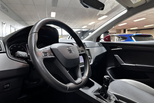 Hij is stijlvol en comfortabel, deze SEAT Ibiza, en hij is ontworpen om u veilig en comfortabel te laten rijden onder alle omstandigheden. Hij heeft een benzinemotor en een handgeschakelde vijfversnellingsbak. Bij de zeer complete uitrusting van deze auto behoren ook in hoogte verstelbare voorstoelen en in delen neerklapbare achterbank.