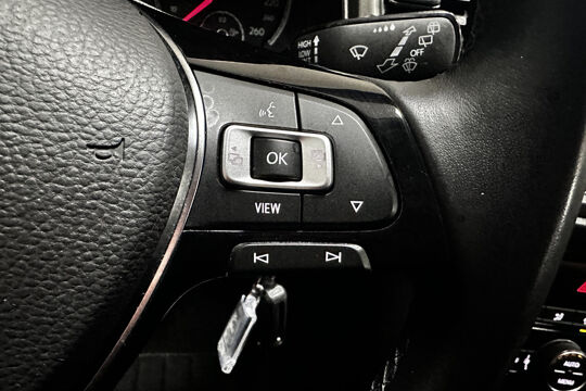Als u de adaptive cruise control inschakelt, regelt de auto zelf de snelheid en de afstand tot de auto voor u. Pech oplossen en zelfs voorkomen? Gaat eenvoudig. Via Connected Services heeft u alle data in de hand, gewoon op de smartphone! De bediening van het audio-installatiesysteem en het navigatiesysteem gebeurt met knoppen op het stuur en als u wilt zelfs met uw stem. De audio is overigens voorzien van DAB-radio voor een altijd heldere ontvangst. Extra makkelijk is de draadloze telefoonlader. De meeste schade bij inparkeren komt van een randje of paaltje dat u even niet zag. Maar de parkeersensoren zien alles en waarschuwen op tijd. De Volkswagen is standaard voorzien van: regensensor, airconditioning, automatisch dimmende binnenspiegel, lederen stuur, isofix-aansluiting en centrale deurvergrendeling met afstandsbediening.