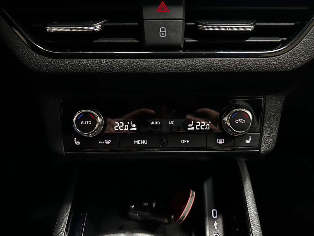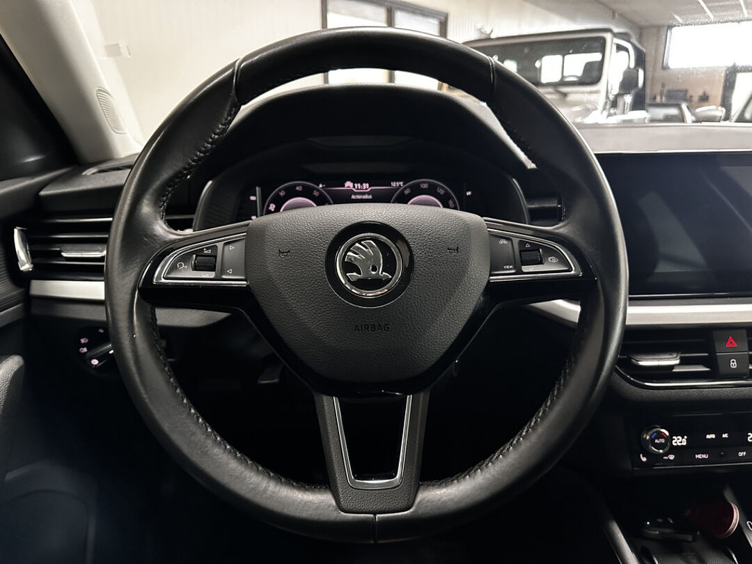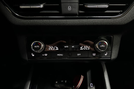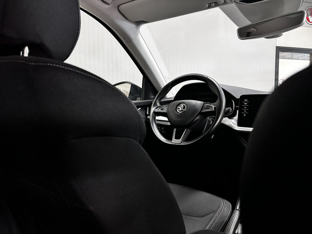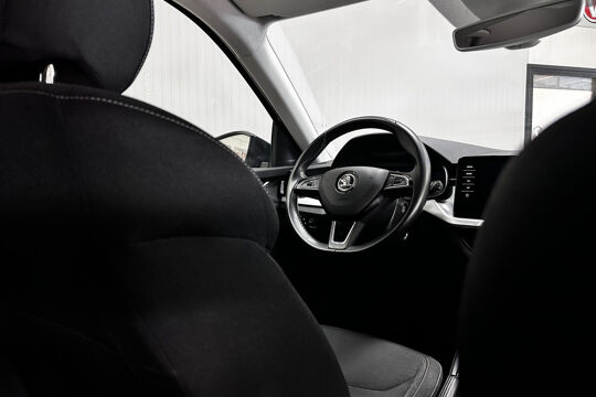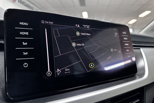 Deze auto is voorzien van een digitaal dashboard waarmee u de cockpit-interface kunt personaliseren. Hoe is het met de banden, de accu en andere onderdelen? Connected Services maakt het inzichtelijk, 24/7 via de app. In deze Scala vindt u niet alleen schakelaars op het stuur om het navigatiesysteem met harde schijf te bedienen en het audio-installatiesysteem met DAB-ontvangst, maar er is ook spraakbediening. De automatische airconditioning zorgt voor een behaaglijk klimaat in de auto. De parkeersensoren waarschuwen wanneer u te krap inparkeert of dat ene paaltje niet hebt gezien. U bent in deze ŠKODA ook voorzien van regensensor, cruise control, automatisch dimmende binnenspiegel, lederen stuur, isofix-aansluiting en usb-aansluiting.