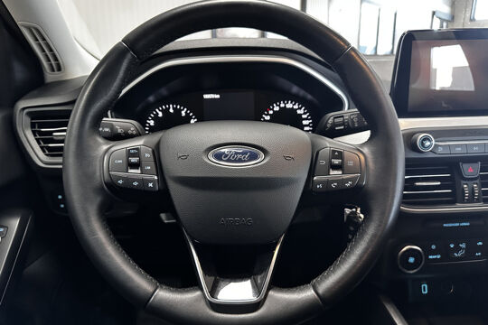 Deze Ford Focus Wagon maakt een voortreffelijke indruk. Hiermee mag je gezien worden in de stad én op de weg! De aandrijving van deze Ford wordt verzorgd door een driecilinder benzinemotor en een handgeschakelde zesversnellingsbak. U blijft ook in de scherpe bochten goed ondersteund door de fraaie sportstoelen. Bij de uitrusting van deze Ford horen onder meer 16 inch lichtmetalen velgen, LED-dagrijverlichting, dakspoiler, in delen neerklapbare achterbank, verstelbare lendensteunen en snelheidsafhankelijke stuurbekrachtiging.